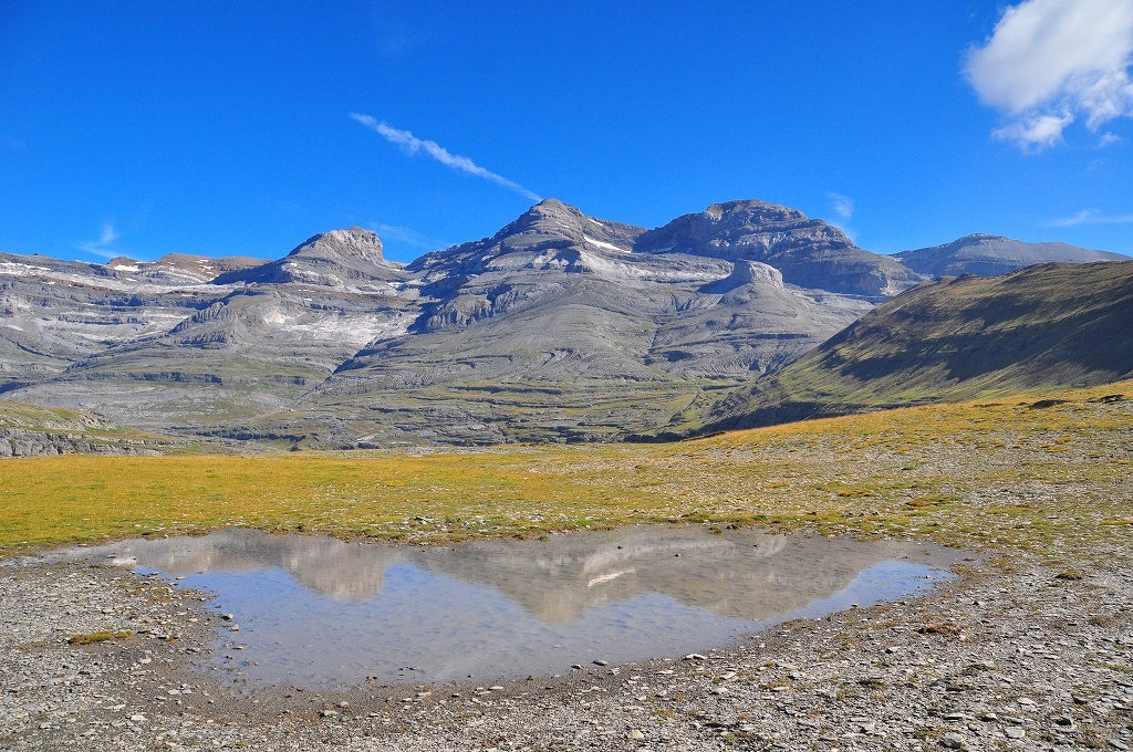 •  ガヴァルニー村から南へ行くとガヴァルニー圏谷ですが、圏谷を正面に見て左側(東側)へ標高差700mを登っていくと、高原状になっていて、この山小屋があります。ここからはガヴァルニーや下の建国からは見えない、スペインとの国境にある「ブレシェドロラン/ロランの裂け目」の展望があります。またここからさらに北東にはプティ・ピメネ山(2667m)、ピメネ山(2801m)があるので、早く山小屋に着いた場合は、ここに登るのをお勧めします。